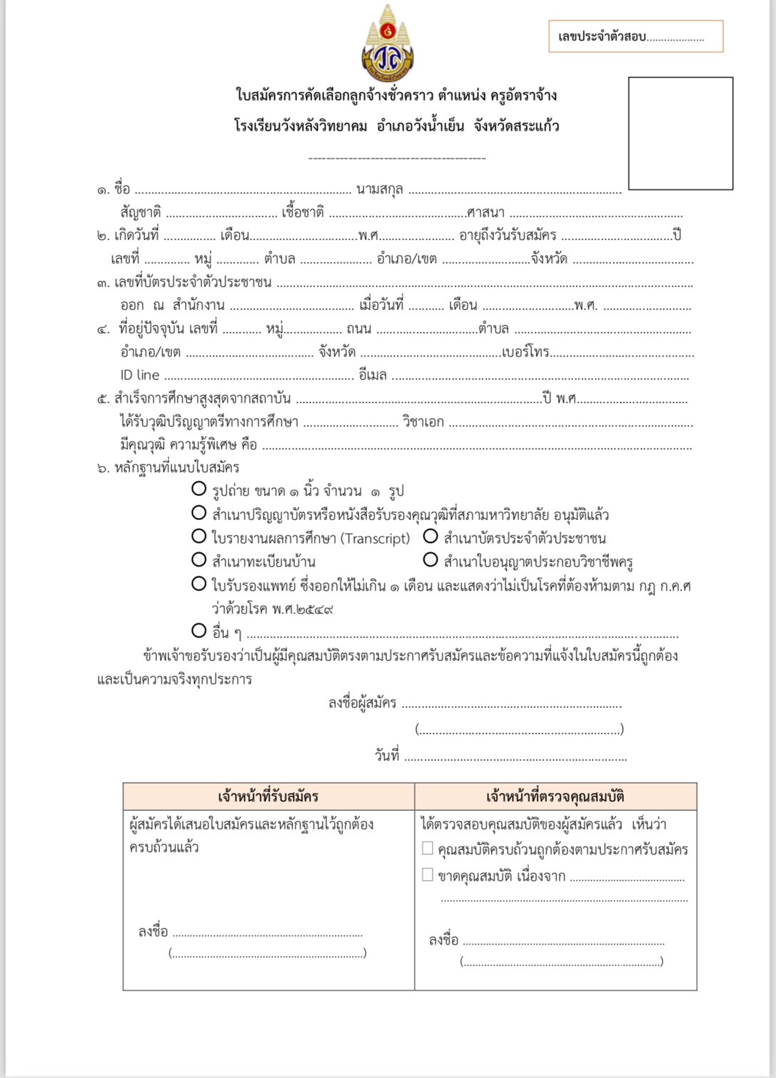 เรื่อง รับสมัครลูกจ้างชั่วคราว ตำแหน่ง ครูอัตราจ้าง