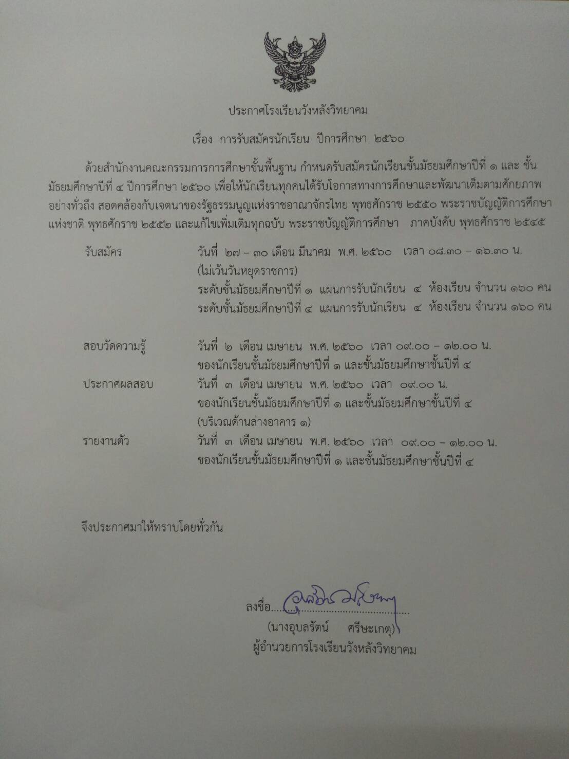 รับสมัครนักเรียน ชั้นม.1 และม.4 ประจำปีการศึกษา 2560
